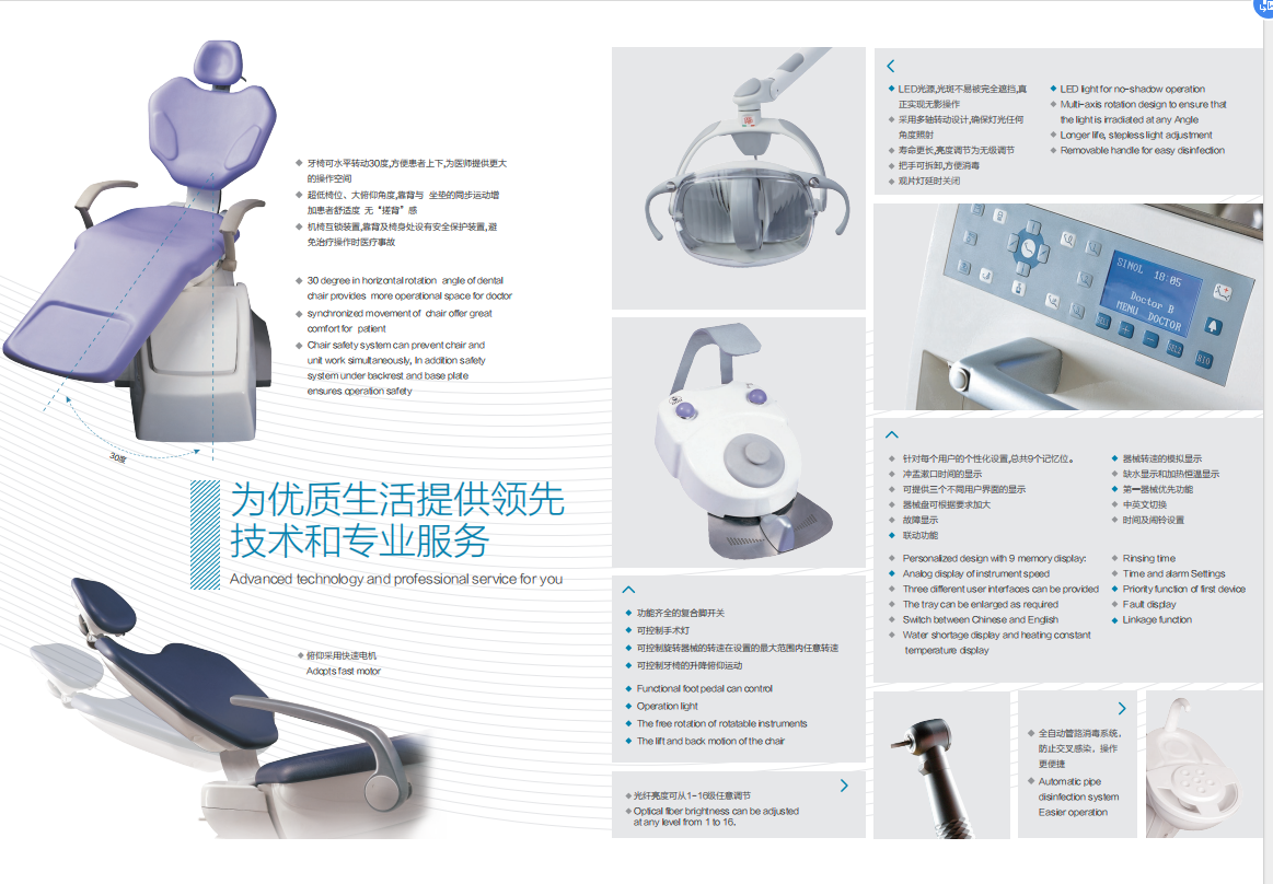 8. Higher safety, with equipment interlocking function, unitbox-chair interlocking function , safety protection function , and chair emergency stop function
