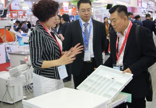 SINOL staff is introducing dental cabinet.