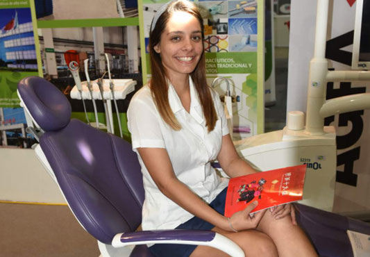 Head of dental department in health ministry MARIELA taking photo at our booth