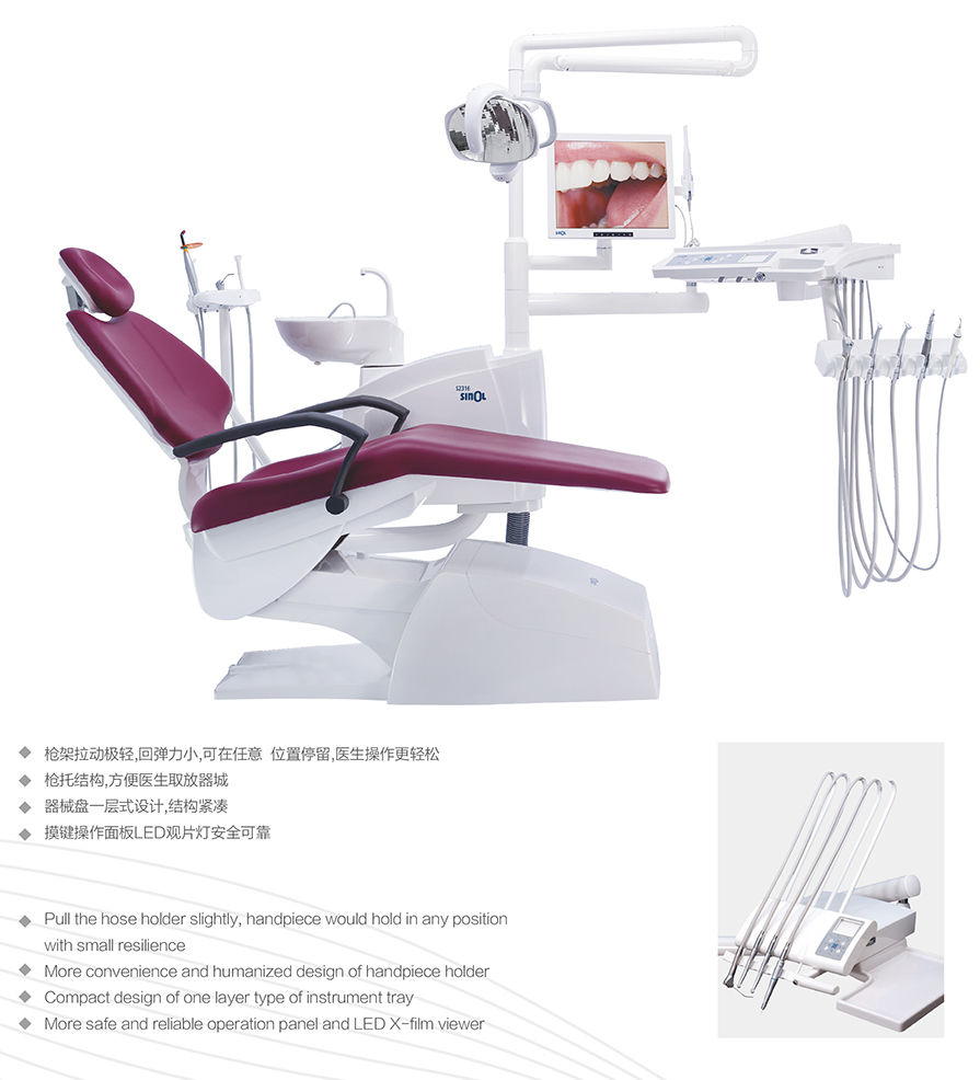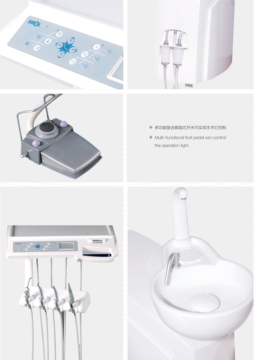 7. Angle sensing technology is used to achieve the position positioning of the dental chair, and the memory position will never be lost.